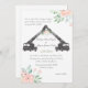 Firetruck silhouettes with bride and groom and beautiful watercolor floral. This unique fire fighter wedding invitation is both elegant and fun. Monogram on back.