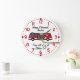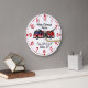 This fun customised wall clock is perfect for fire truck lovers and firefighters. It has a design with a cartoon firetruck, including a hose. You can change the background colour if you want.
