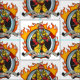 Fully dressed firefighting in firefighting gear with fire axe! This firefighter fears no fire! Fight to live, live to fight firefighters slogan with raging flames background! Heroic firefighting gift!
