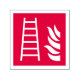 Fire ladder and flame icon on red background.