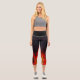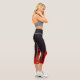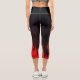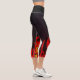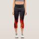 Black tight pants with a design of fire flames at the bottom. The fire flames are red with the colour of the pants being black. Which gives an attraction to colours.