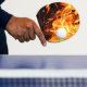 Hot orange and yellow flames, rising from a dark base, cover this ping pong paddle. Exciting and awesome design!