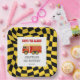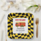 Fire Truck Black Yellow Chequered 3rd Birthday Paper Plate