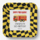 Retro Cute Sound the Alarm Fire Truck Wavy Chequered Birthday paper plate. Matching Items in our shop for a complete party theme.