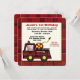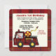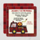Adorable plaid pattern fire engine birthday party with photo. Personalise text and photo as preferred.