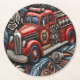 Fire Truck Leather Tribute Art Round Paper Coaster