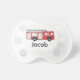 This adorable fire truck pacifier is the perfect way to top off a baby shower gift. Simply customise with the baby's name.