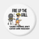 Funny fishing design of a man cooking on a girl and the saying, Fire up the grill cause fishing ain't catch and release. These make great gifts for men, women and kids who like fishing.