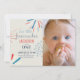 This cute and modern 4th of July/independence day 1st/first birthday photo invitation features hand-painted fireworks in red, white, and blue. The reverse side features a navy blue background with white star pattern. Personalise for your needs. You can find more matching products at my store.