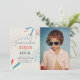 This cute and modern 4th of July/independence day kid's birthday photo invitation features hand-painted fireworks in red, white, and blue. The reverse side features a navy blue background with white star pattern. Personalise for your needs. You can find more matching products at my store.