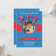 A stylish way to invite guests to a double celebration - July 4th festivities and a birthday party. The blue background is covered in tiny red, white and blue stars and features a round photo window with a patriotic band and fireworks. The card is easy to customise with your wording, font, font colour and choice of six paper types.