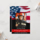 American Flag with Thin Red Line Firefighter Celebration of Life Memorial in a modern American flag design in firefighter flag colours. Personalise this firefighter memorial celebration of life invitation with your fireman's photo, name & dates and sentiment, and event details . This firefighter funeral celebration of life will be a treasured keepsake. Perfect for a firefighter funeral, fireman funeral, firefighter memorial service or firefighter celebration of life. In Loving Memory Firefighter Memorial Thin Red Line Flag. COPYRIGHT © 2020 Judy Burrows, Black Dog Art - All Rights Reserved. Firefighter Celebration Of Life Fireman Memorial Invitation