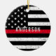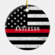 Firefighter distressed Thin Red Line with name Ceramic Ornament