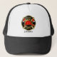 Two red fire axes and a red helmet are on this design which includes your city on the back and your name on the front.