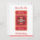This invitation is decorated with the Firefighters EMT Rescue Maltese Cross shield. The front of the card is white with a custom Maltese Cross shield into which the bride and grooms first names can be inserted. The reverse side is in reds and provides spaces for the relevant information superimposed on a Maltese Cross.