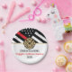 This design features a firemen's flag with black and white stripes, and a thin red line stripe as well. "Congratulations" and a fireman's badge sits above the name of the graduating firefighter. This design also works great for retiring firefighters, lieutenants, or chiefs. Celebrate in style!