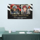 This design features a firemen's flag with black and white stripes, and a thin red line stripe as well. "Congratulations" and a fireman's badge sits above the name of the graduating firefighter. Celebrate in style with this customisable photo banner!