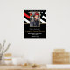 This design features a firemen's flag with black and white stripes, and a thin red line stripe as well. A fireman's badge sits above all of the party details for the graduating firefighter, which is next to a picture of the new fire academy graduate.
