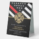 This design features a firemen's flag with black and white stripes, and a thin red line stripe as well. "Congratulations" and a fireman's badge sits above the name of the graduating firefighter. Celebrate in style!