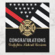 This design features a firemen's flag with black and white stripes, and a thin red line stripe as well. "Congratulations" and a fireman's badge sits above the name of the graduating firefighter. This design also works great for retiring firefighters, lieutenants, or chiefs. Celebrate in style!