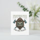 A scary face in a mask with firefighter fire and rescue around it. This design looks really effective on these Flat Note Card