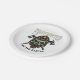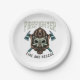A scary face in a mask with firefighter fire and rescue around it. This design looks really effective on these Paper Plates