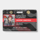 The customisable fire department ID badge features a firefighter emblem at the top that can be customised to your department as well as a place for the state logo as well. Customise with the firefighter's photo on the left. Beside the photo, the firefighter’s name, badge number, rank, and department are displayed. Add your own barcode to the back of the card, along with issue and expiration dates, and description of the firefighter, captain, chief, or office employee.