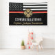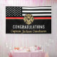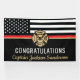 This design features a firemen's flag with black and white stripes, and a thin red line stripe as well. "Congratulations" and a fireman's badge sits above the name of the graduating or retiring firefighter, lieutenant, or chief. Celebrate in style!