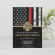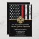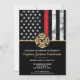 This design features a firemen's flag with black and white stripes, and a thin red line stripe as well. A fireman's badge sits above all of the party details for the retiring firefighter, lieutenant, or chief's retirement party. The invitations can also be customised for a retiring firefighter.