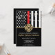 This design features a firemen's flag with black and white stripes, and a thin red line stripe as well. A fireman's badge sits above all of the party details for the retiring firefighter, lieutenant, or chief's retirement party.