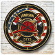 Firefighter NAME Fireman Fire Department USA Flag design - Emblem with Red Helmet and Axe. Customise with your Name, Station/Dept Number and location.