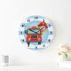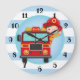 Firefighter Fire Truck Brown Hair Boy Large Clock