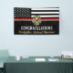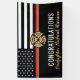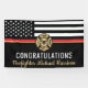 This design features a firemen's flag with black and white stripes, and a thin red line stripe as well. "Congratulations" and a fireman's badge sits above the name of the graduating firefighter. This design also works great for retiring firefighters, lieutenants, or chiefs. Celebrate in style!