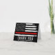 This design features a firefighter flag with black and white stripes, and a thin red line stripe as well. This thank you card is great for showing appreciation to and thanking a firefighter, lieutenant, captain, or chief for their service.