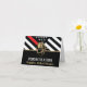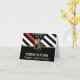 This design features a firemen's flag with black and white stripes, and a thin red line stripe as well. "Congratulations" and a fireman's badge sits above the name of the graduating firefighter. This design also works great for retiring firefighters, lieutenants, or chiefs. Celebrate in style!