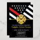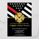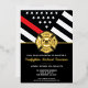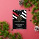 This design features a firemen's flag with black and white stripes, and a thin red line stripe as well. A fireman's badge sits above all of the party details for the graduating firefighter. This design also works great for a retiring firefighter, lieutenant, or chief's retirement party.