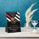 This design features a firemen's flag with black and white stripes, and a thin red line stripe as well. A fireman's helmet sits above all of the party details for the graduating firefighter. This design also works great for a retiring firefighter, lieutenant, or chief's retirement party.