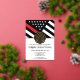 This design features a firemen's flag with black and white stripes, and a thin red line stripe as well. A fireman's badge sits above all of the party details for the graduating firefighter. This design also works great for a retiring firefighter, lieutenant, or chief's retirement party.
