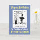 Policeman envious of a Fireman who has a private lift to use. A birthday card for the world's best Fireman!