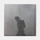 A magnet featuring a photo of a firefighter walking through a shower of water and smoke.