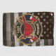 Firefighter NAME Fireman Fire Department USA Flag design - Emblem with Red Helmet and Axe. Customise with your Name, Station/Dept Number and location.