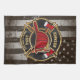 Firefighter NAME Fireman Fire Department USA Flag design - Emblem with Red Helmet and Axe. Customise with your Name, Station/Dept Number and location.