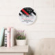 This design features a firefighter flag with black and white stripes, and a thin red line stripe as well. This clock is great for showing appreciation to a firefighter, lieutenant, captain, or chief for their service and becoming firefighter of the year.