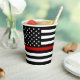 Thin Red Line Firefighter Party Paper Cups - USA American flag design in Firefighter Flag colours. These firefighter paper cups are perfect for your fire department party, firefighter retirement party, or fire academy graduation.