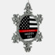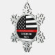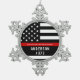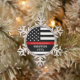 Personalised Thin Red Line Ornament - American flag in Firefighter Flag colours, modern black red design . Personalise with firefighter name, or fire department. This personalised firefighter ornament is perfect for fire departments, fire service,or as a memorial keepsake and fire department Christmas gifts o\r stocking stuffers. Order these firefighter ornaments bulk wholesale for the fire academy or fire department gifts, firefighter christmas stocking stuffers. COPYRIGHT © 2020 Judy Burrows, Black Dog Art - All Rights Reserved. Firefighter Personalised Fireman Thin Red Line Snowflake Pewter Christmas Ornament