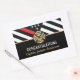 This design features a firemen's flag with black and white stripes, and a thin red line stripe as well. "Congratulations" and a fireman's badge sits above the name of the graduating or retiring firefighter, lieutenant, or chief. Celebrate in style!
