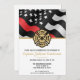 This design features a firemen's flag with black and white stripes, and a thin red line stripe waving in the wind. A fireman's badge sits above all of the party details for the retiring firefighter, lieutenant, or chief's retirement party. The invitations can also be customised for a firefighter academy graduate.