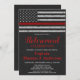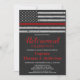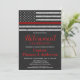 Celebrate your retirement and invite friends and family to your firefighter retirement with this Thin Red Line Firefighter Retirement Invitation - USA American flag design in Firefighter Flag colors , modern red black on leather design . Personalize with name, fire department, address venue, and rsvp details. This firefighter retirement invitation can be used for firefighter graduation, simply change the text when personalizing.See our collection for matching fireman retirement gifts, party favors, and supplies. COPYRIGHT © 2020 Judy Burrows, Black Dog Art - All Rights Reserved. Firefighter Retirement Leather Thin Red Line Invitation