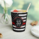 Thin Red Line Firefighter Retirement Paper Cups - USA American flag design in Firefighter Flag colours. This personalised firefighter retirement napkins are perfect to celebrate your retired fireman, firefighter retirement party decor, fire station retirement party. Personalise these firefighter retirement party napkins with firefighters, name , years of service, service years and message.