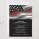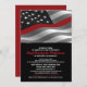 Patriotic US flag and thin red line design for these firefighter retirement invitations.